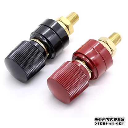 接线柱的绝缘部分是ABS,导电的螺栓是铜,固定的螺母和垫片是铁。接线柱(M8×55㎜)电流:50A耐压:3KV面板开孔:φ11.3mm