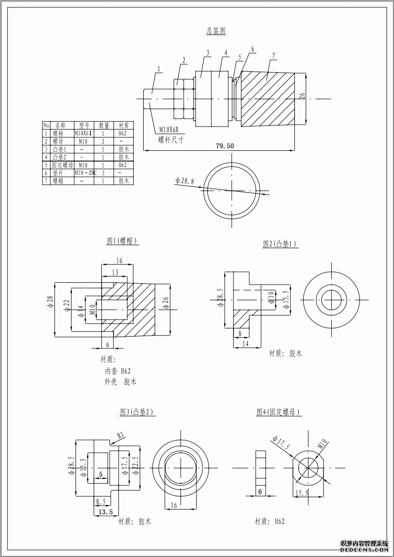 旋帽总高27mm,最顶部直径26mm旋帽最大直径28mm,旋帽下端直径22mm高6mm.内部配直径10mm螺母(深度13mm)